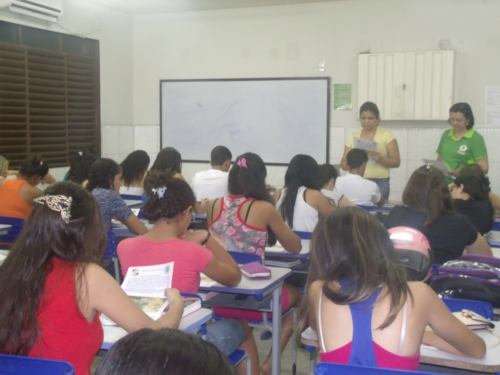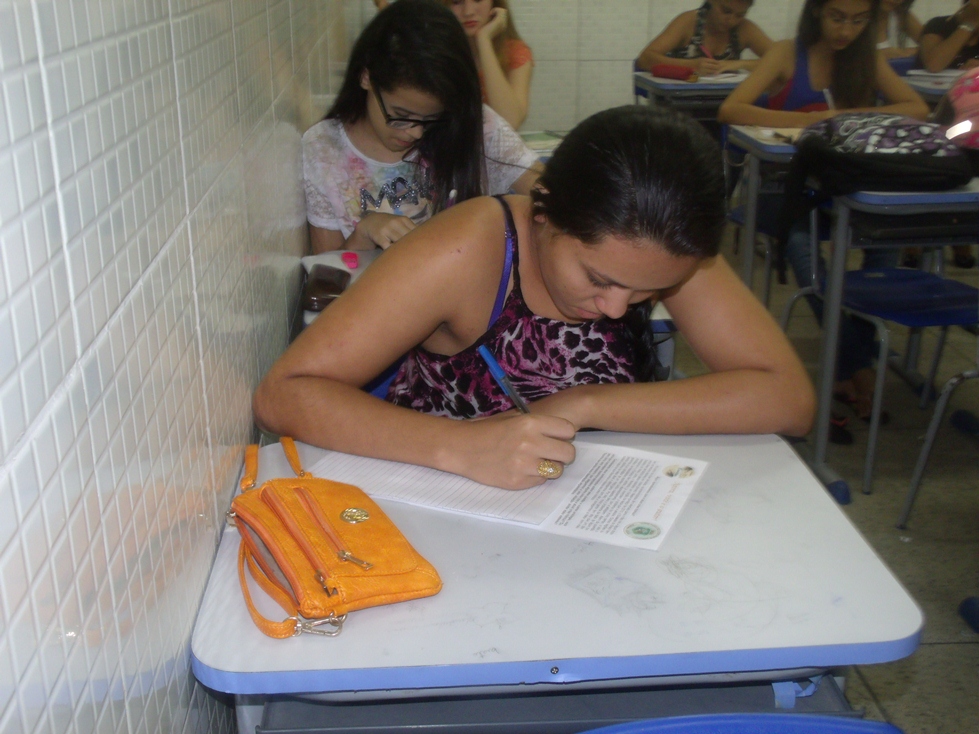 A professora Neide Aquino juntamente com a professora Ana Carla estão desenvolvendo um ótimo projeto sobre produção textual. Trata-se de uma série de ações que objetivarão melhorar a produção escrita dos alunos. Nesse primeiro momento serão feitas oficinas de redação baseadas nas competências do ENEM e no material preparatório fornecido pelo Governo do Estado do Ceará. Semanalmente uma redação é produzida, na semana seguinte ela é entregue com as devidas correções, em seguida são feitas orientações e um novo texto é feito. Ao final do processo será feito um gráfico para cada aluno com os avanços obtidos.