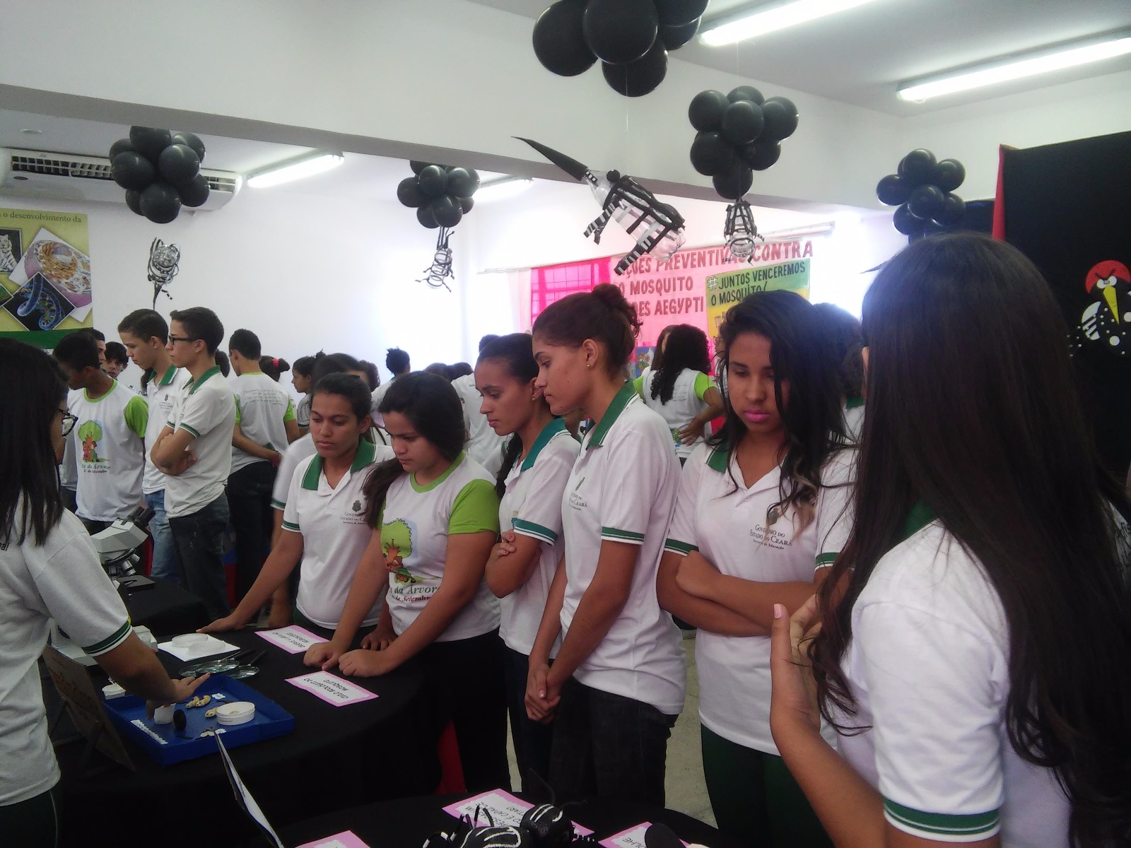Na ocasião, expuseram para todos os 450 estudantes da EEEP Padre João Bosco de Lima e convidados, de maneira didática e interativa a origem, morfologia, ciclo biológico e comportamento do mosquito Aedes aegypti, a origem e estrutura viral dos agentes etiológicos dessas doenças, os tipos de mutações que os mesmos sofrem, os mecanismos de transmissão, as manifestações clínicas, bem como a fabricação de mosquitos transgênicos e de vacina; quais medidas podem e devem ser tomadas para evitar a procriação do mosquito e como é possível detectar os sintomas, identificando quais se aplicam a cada uma das três doenças causadas pelo Aedes aegypti.