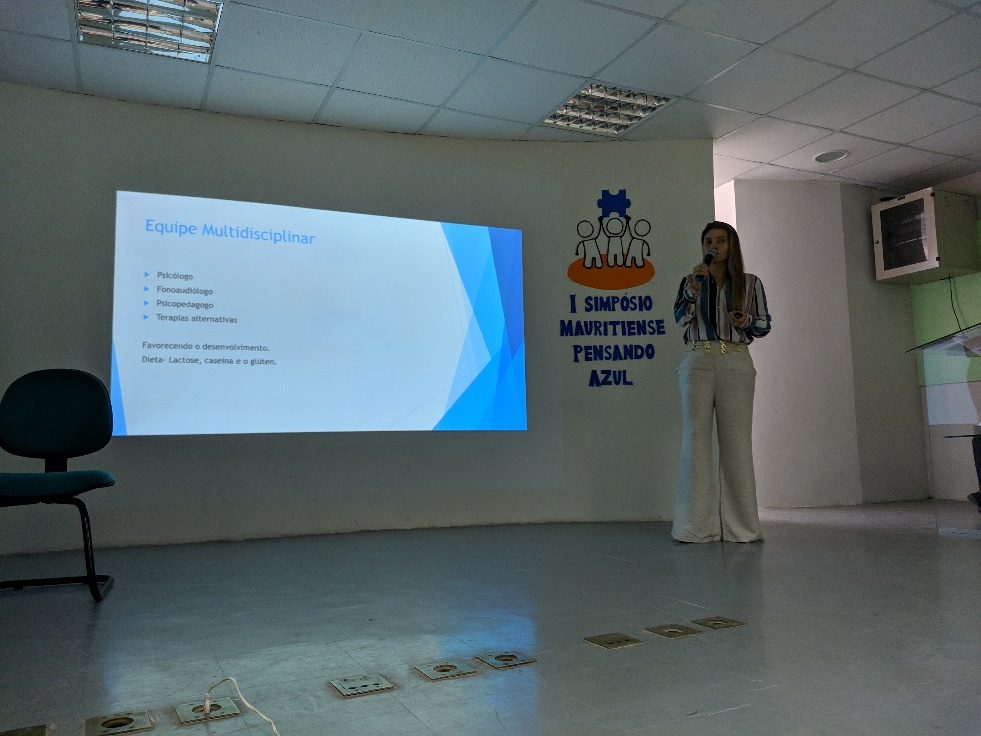 O I SIMPÓSIO MAURITIENSE PENSANDO AZUL contou com as seguintespalestras: História do Autismo, ministrada pelos estudantes Jádson Freitas, Leonor Massaranduba e Raélida Sousaem quese realizou uma perspectiva histórica e também atual sobre o TEA.
