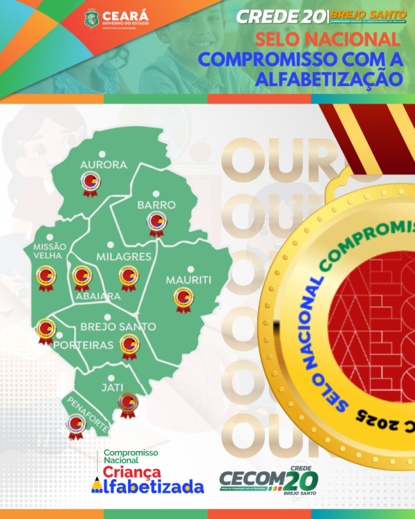 Divulgamos o resultado oficial do Selo Nacional Compromisso com a Alfabetização 2025 dos municípios que compõem a CREDE 20, publicado pelo MEC, nesta segunda-feira (9) e parabenizamos todas as redes pelo compromisso e alcance do emblema nacional.